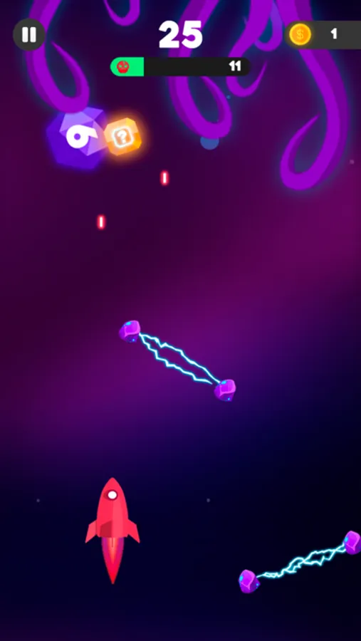 Viaje espaço afora destruindo e desviando de asteroides! Aprimore seu foguete, evolua bônus e desbrave o máximo de planetas que conseguir, SPACE OUT!
