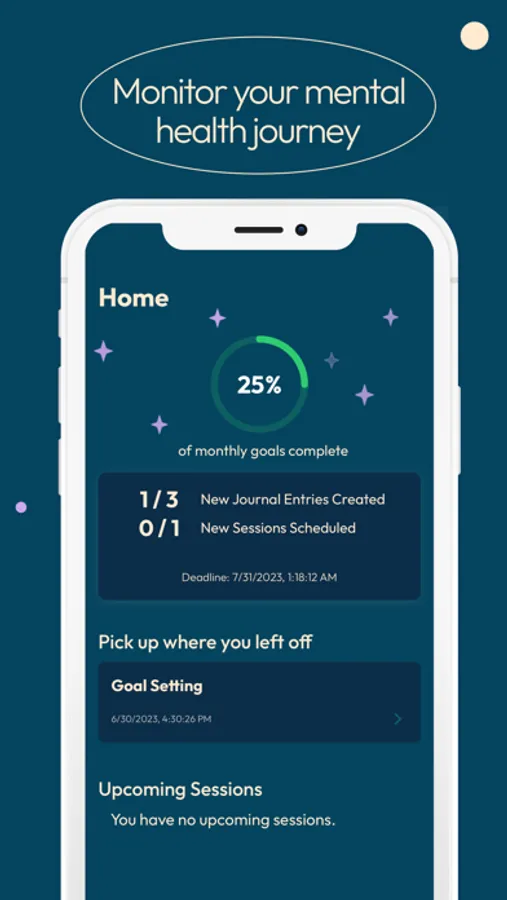 The Plutis app keeps track of all progress you make toward your mental health goals and provides it all in one convenient place. It provides reminders and keeps you accountable for making progress toward those goals and making mental healthcare a proactive part of your life. You can easily adjust goals month-to-month and receive helpful guidance throughout the full duration of your mental health journey.