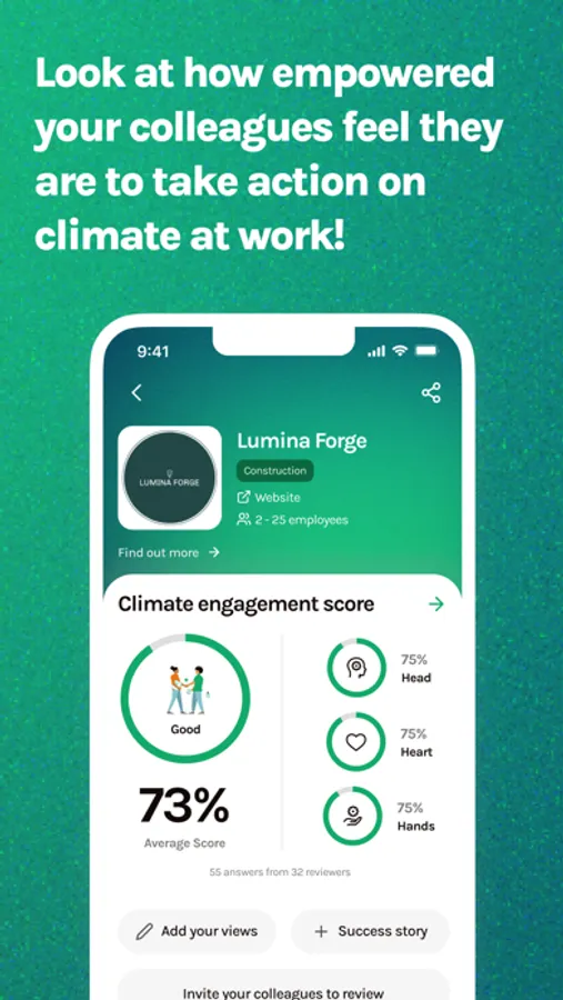 Act - Make a difference by anonymously reviewing your experience of climate action at work, and share success stories from your workplace which others can adopt.