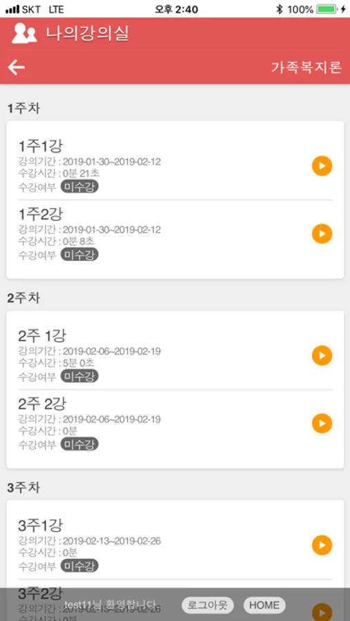회원가입 및 수강신청시 이용자의 휴대폰을 본인인증을 완료한 후 앱을 통해 수업을 수강할 수 있습니다.