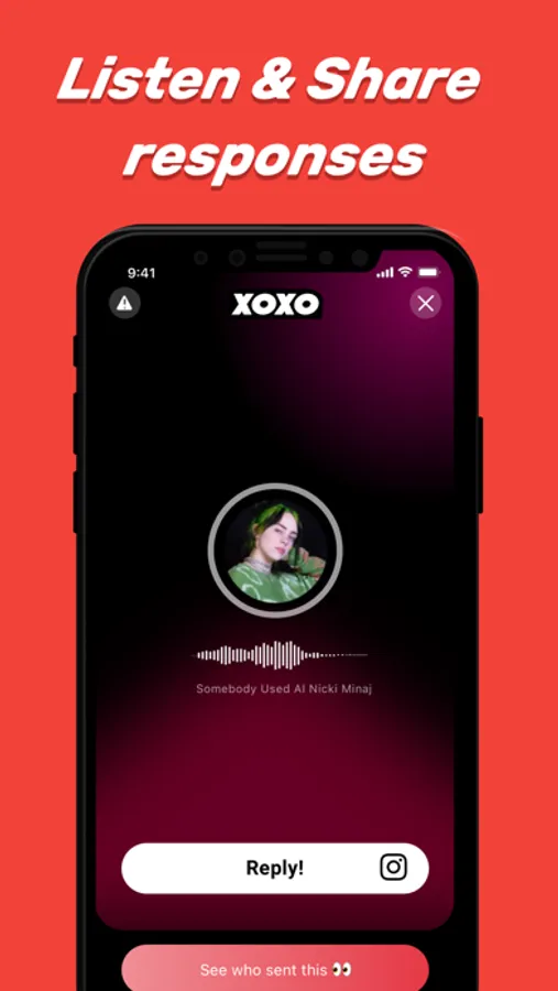 XOXO is an application that utilizes Al technology to send anonymous voice messages through social platforms, allowing you to experience a distinctive way of connecting with your friends! Share your unique XOXO link on social platforms and let your friends send you customized anonymous voice messages with celebrity filters. Get ready to receive surprises from your fans and friends! To ensure user safety, XOXO will use advanced AI technology to ensure content is reviewed to prevent harmful language and bullying.