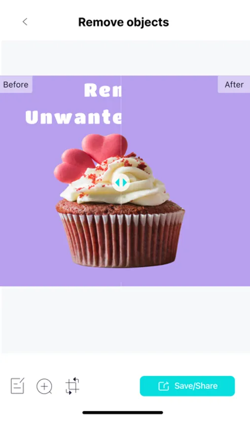 Select and remove objects, remove all objects you don't want to keep on the photo, people, watermarks, text, etc.
