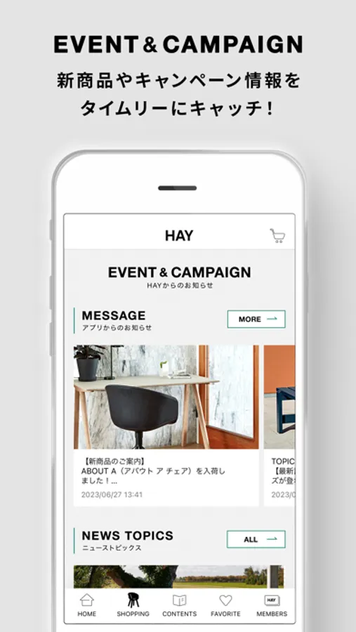 最新情報や入荷情報をお届け。さらにアプリ限定のコンテンツも公開。HAYの世界観を堪能できるアプリです。