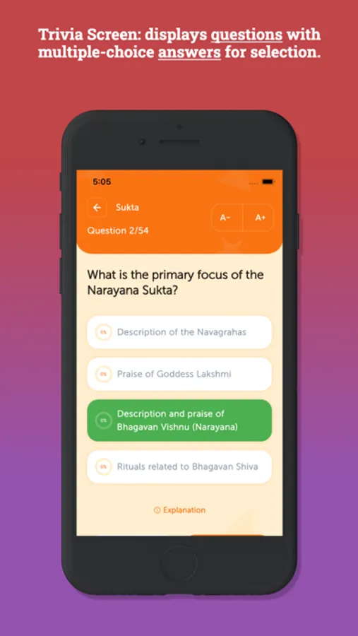 So, whether you're a novice seeking a gentle introduction or a scholar desiring to test your knowledge, the Vedic Trivia app is your pocket-sized guru, ready to guide you through the beautiful world of Vedanta. Embark on this journey of self-discovery and intellectual enlightenment today!