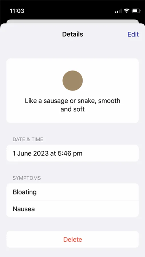 Record the details of every bowel movement with a few taps. Track consistency, colour, size, and timing. Input additional symptoms such as bloating, abdominal pain, or changes in appetite. Whether you're regular as clockwork or experiencing irregularities, your 'Poo Diary' will help you monitor your gut health daily.