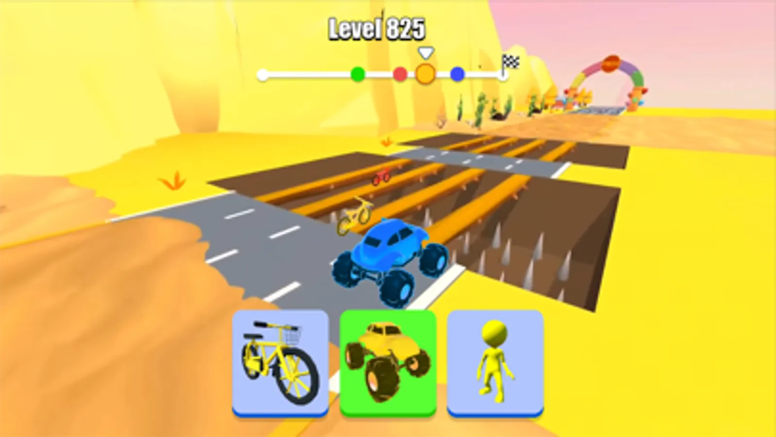 You’ll join an exciting race with many obstacles, complicated and changeable terrains. Let’s start the race by observing carefully and quickly changing means of transport. You need to make use of flexible ability, concentration skills to transform various means of transport such as: Submarines, cars, airplanes, motorbike, umbrella…, overcome obstacles, and get the victory in this race.