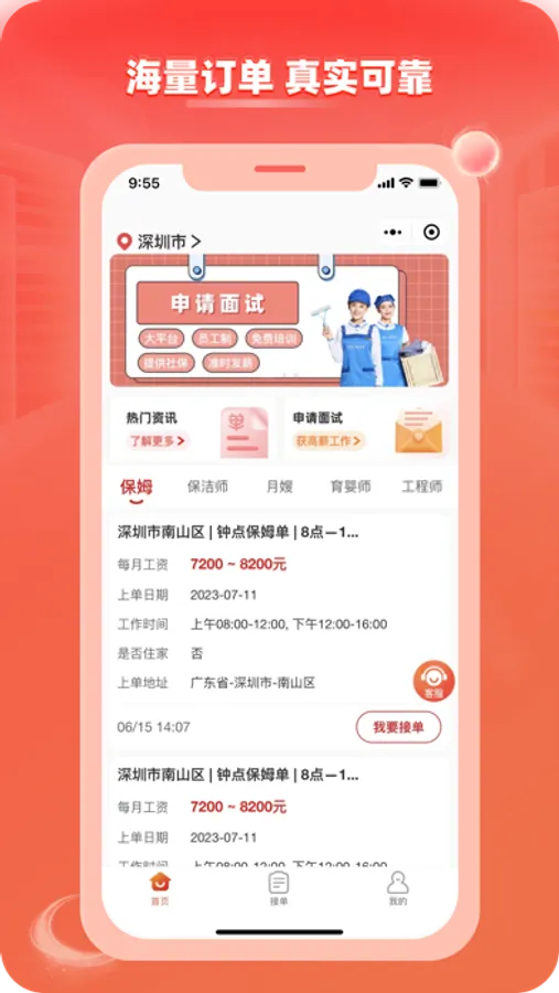 为从业者搭建个人履历信用体系和个人职业成长发展体系,提供大量、高质的就业机会面向领域/行业:家政服务业;主要功能:a、首页;b、接单;c、课程;d、我的。 技术特点:app;功能强大,操作简便,安全性高监控性强,智能,权限管理机制完善 1、建立了合理的分权管理机制:根据需要设置管理角色;信息管理规范真实高效 2、实时更新,数据库方式存储,根据需要在前台显示 3、操作简便。