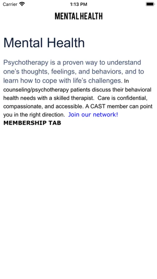 The listings contain information about the provider, the services available, and most importantly the ability to accommodate intake and assessment within 72 hours. Virtual appointments are encouraged for people without transportation. The CAST The App features: