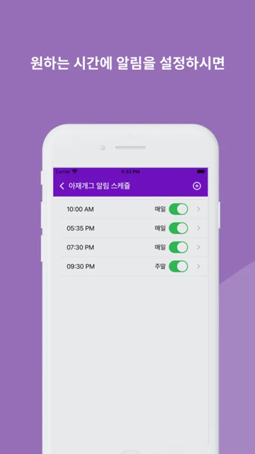 스케쥴 기능: 설정을 통해 매일 원하는 시간과 요일에 랜덤한 개그를 받을 수 있습니다.