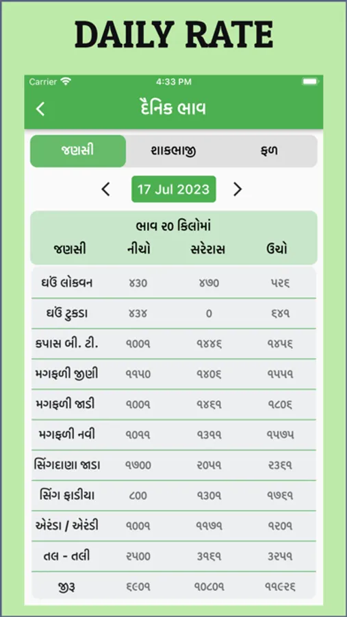 Gondal APMC - Daily Bajar Bhav app helps farmer of Saurashtra, Gujarat to know daily prices of Jansi & Vegetables of Gondal market yard(APMC). Specially, khedut of cities & villages from Rajkot, Amreli, Junagadh, Porbandar, Jamnagar, Dwarka etc.
