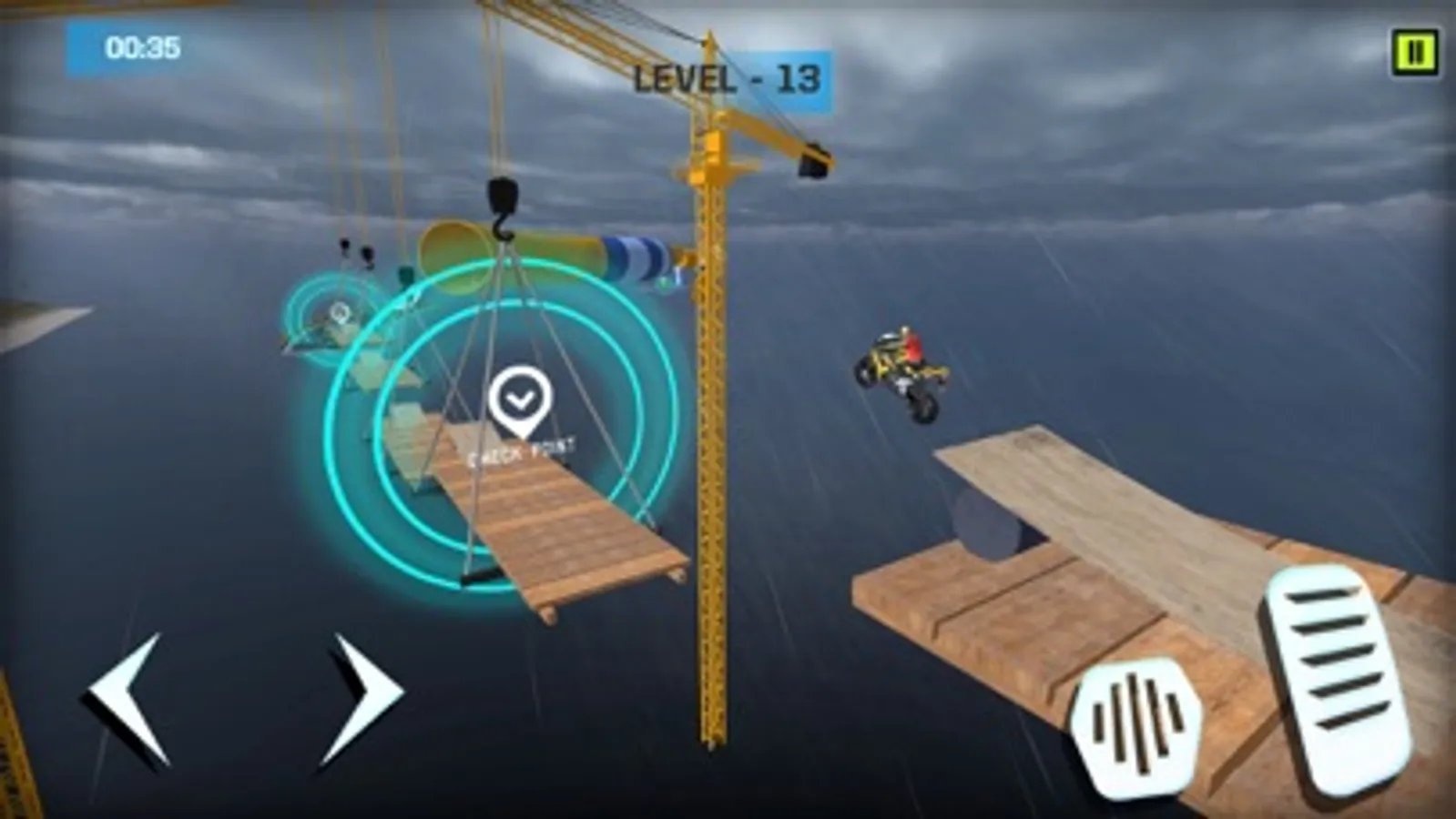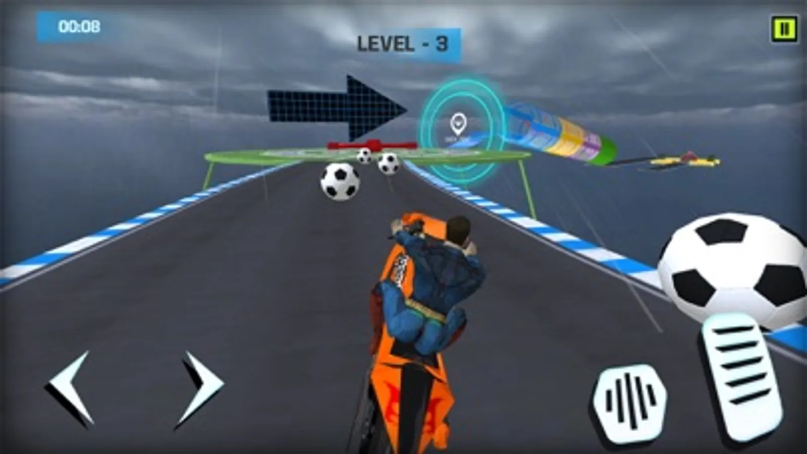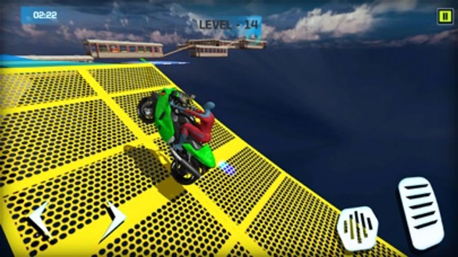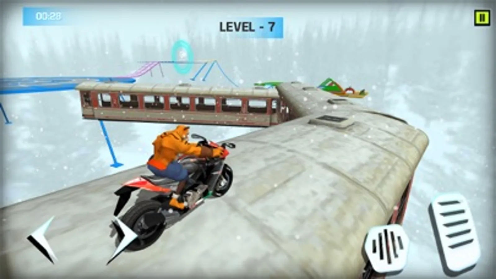 Our game has 15 levels with increasing difficulty, each level providing a more adventurous and thrilling experience than the previous one. With impossible tracks in the air and various hurdles on the way, you will be on the edge of your seat, trying to make it through to the end.