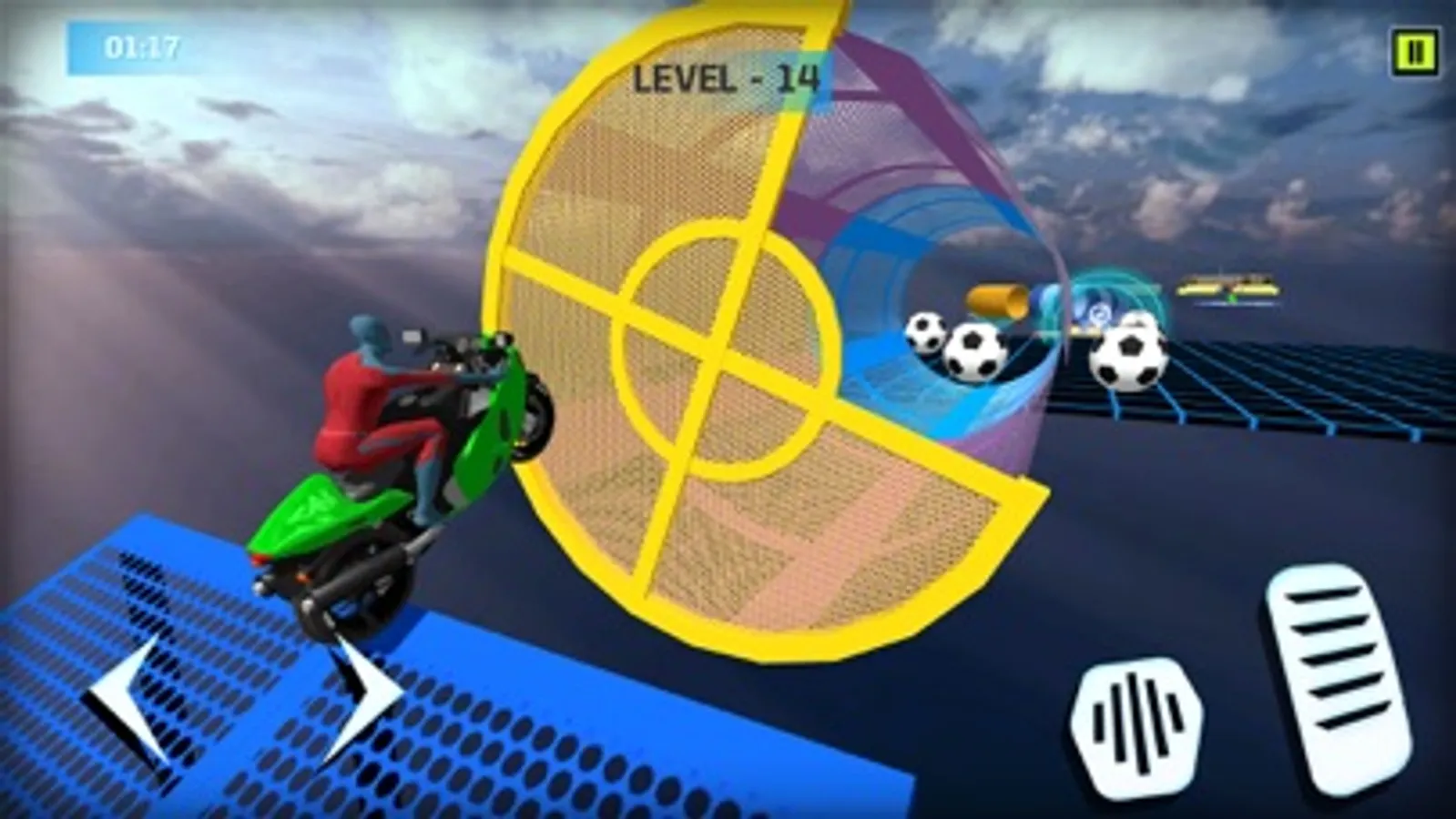 In this game, you will ride your bike with a superhero who needs your help to become a master stuntman. Your mission is to guide your hero through various challenging ramps with breathtaking views and perform heart-pounding stunts that will leave you in awe. This bike stunt game is like no other, played on ramps in the air, where one small mistake can mean the end of your hero's journey.