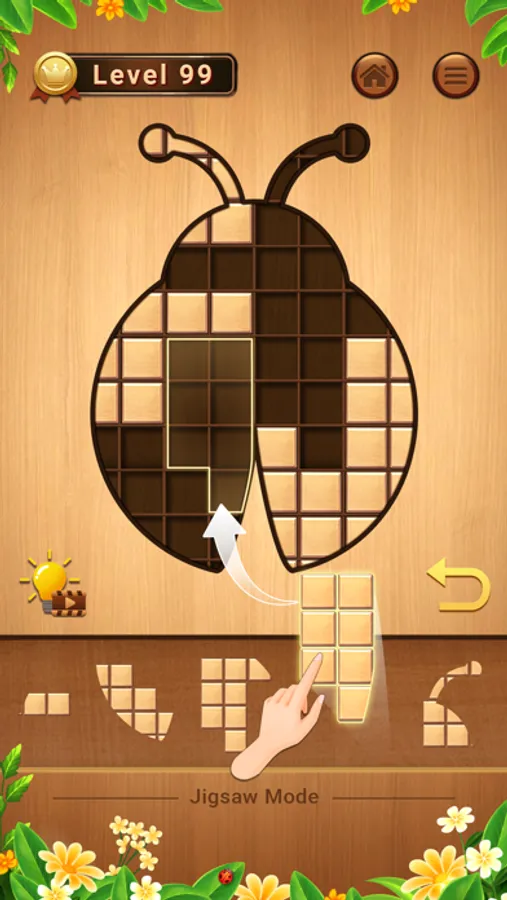 - Fill the rows, columns, or squares to eliminate wood blocks.