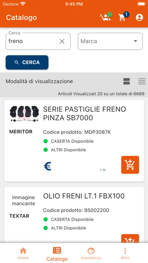 Entra a far parte del mondo Casertano Ricambi, accedi al nostro catalogo completo e fatti aiutare dal nostro personale specializzato direttamente dal tuo telefono. Catalogo ricambi per veicoli industriali - una vasta gamma di ricambi di cui potrai sapere a vista d'occhio codice, marca, disponibilità, scontistica, alternativi e promozioni.
