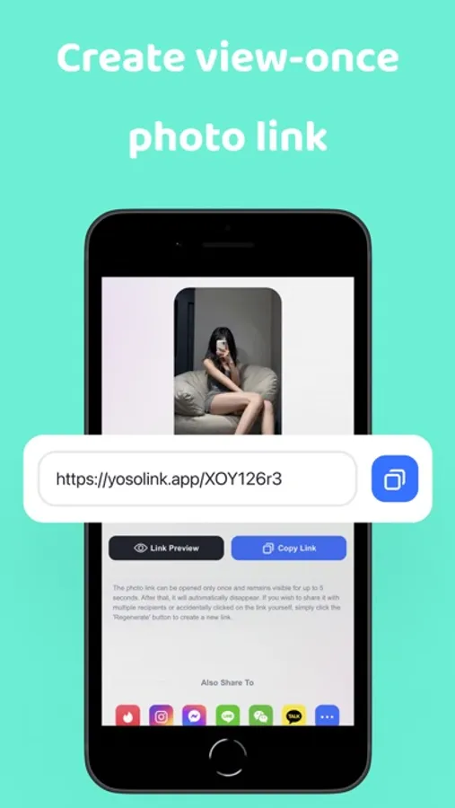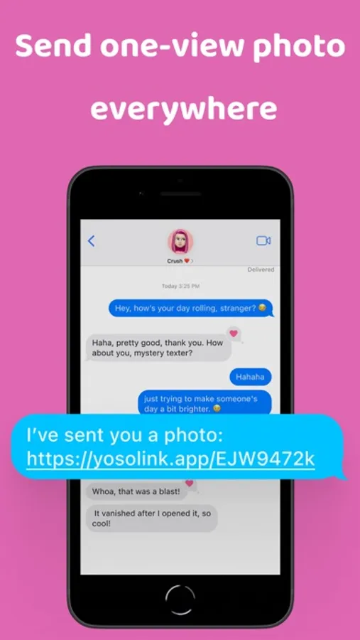 Welcome to YOSO - Sharing self-destructing photos across all your favorite platforms, including Tinder, iMessage, WeChat, KakaoTalk, Bumble, TikTok, Hinge, Discord, Line, TextNow, Text Message and many many more.