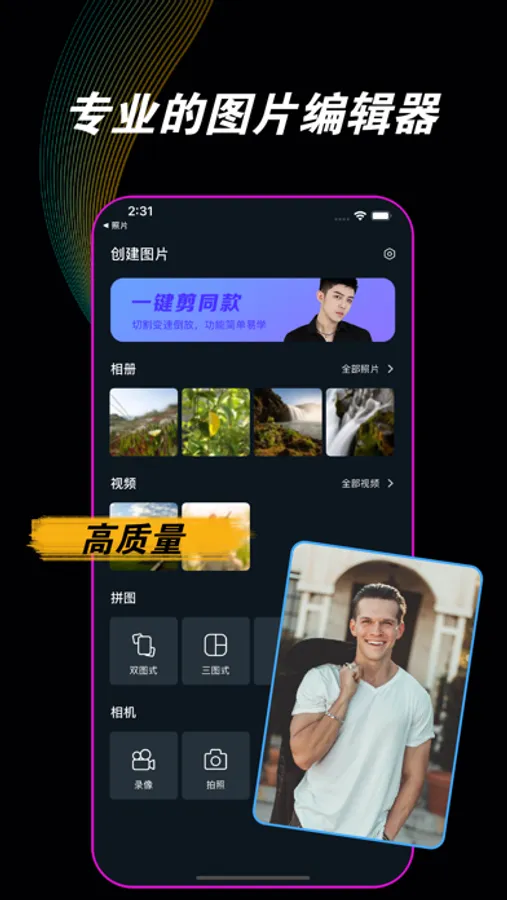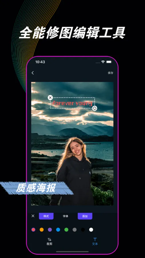 照片编辑:添加文字等多种图片编辑处理工具,轻松做出专业ps效果;