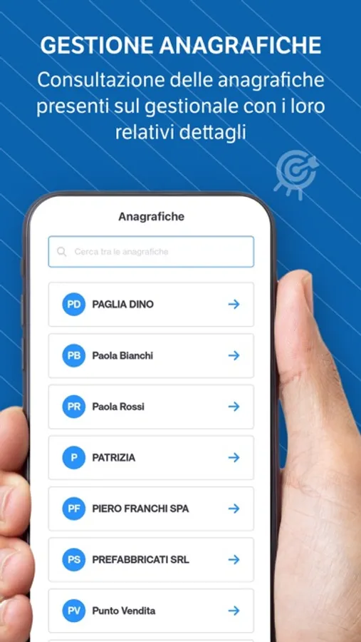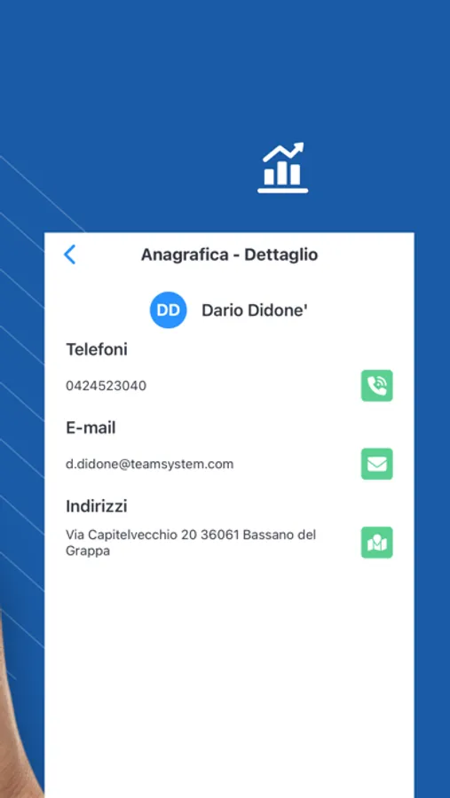 Tutte le anagrafiche sempre a portata di mano con comodi tasti azione per chiamare velocemente o trovare un indirizzo.