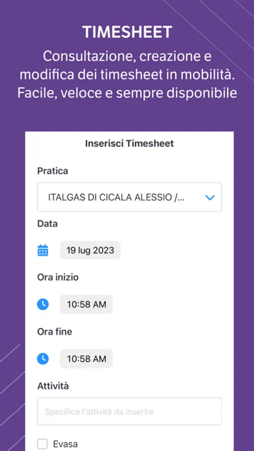 Inserimento dei timesheet sempre disponibile. Con TeamSystem Legal App i professionisti potranno correggere, monitorare e consolidare il prospetto giornaliero e settimanale in mobilità, con pochi click.