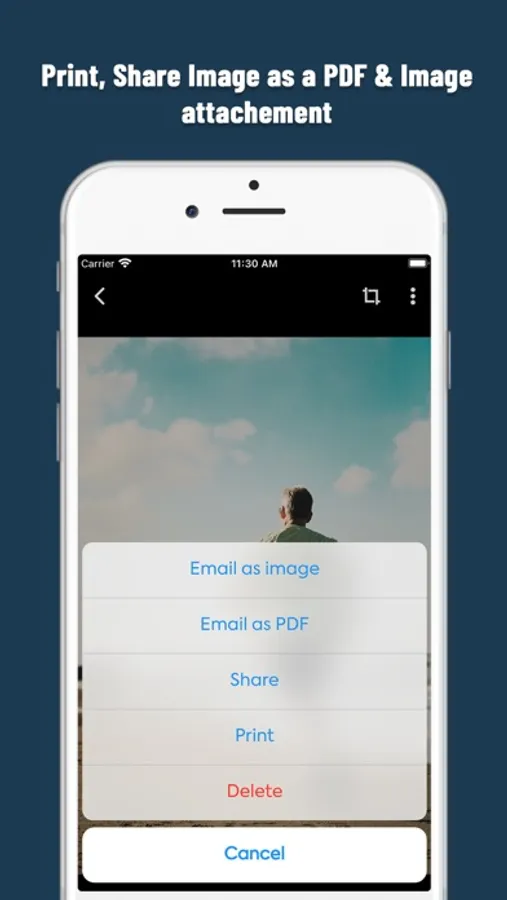 Easy to share image as PDF attachment, Image Attachment, print image or share with any social media platform