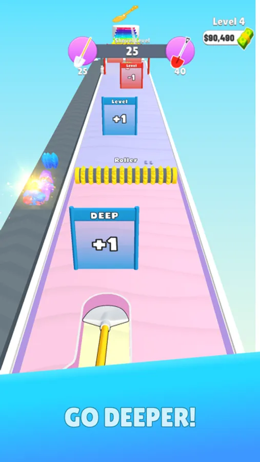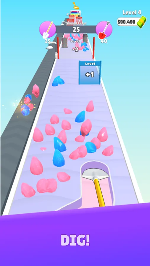 In Shovel Run 3D, your main objective is to dig your way through layers of dirt and rubble to reveal hidden gems. As you progress through the game, you'll encounter piles of gems that will serve as rewards for your excavating skills. Collect as many gems as you can to unlock exciting shovel upgrades that will enhance your digging prowess. With each upgrade, you'll be able to dig faster, uncover gems more efficiently, and reach even greater depths.