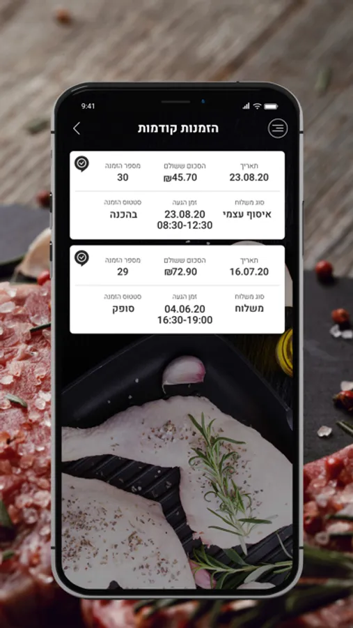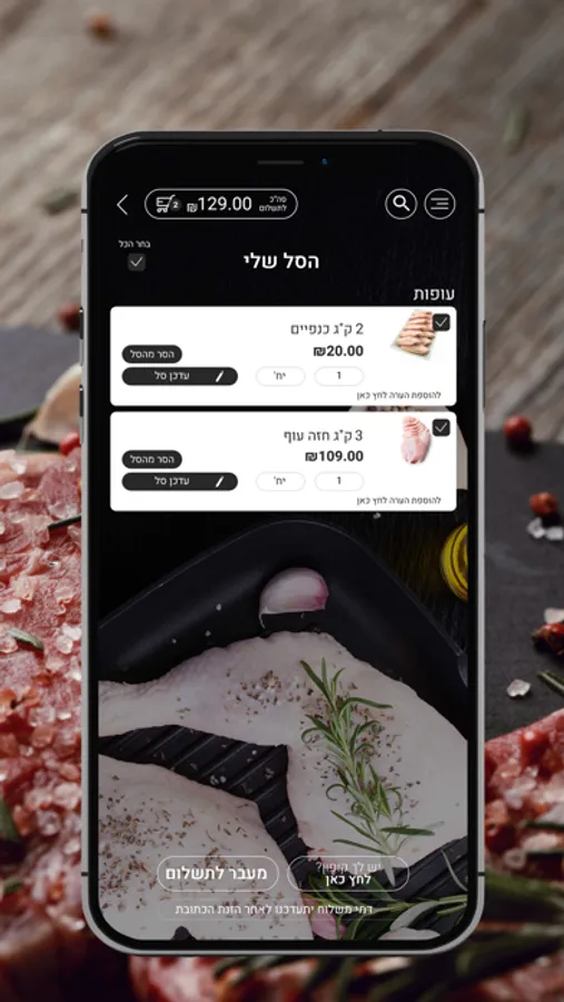 ניתן לבצע הזמנות ומשלוחים ישירות מהאפליקציה גבריאל - קצביית בוטיק כחול לבן.