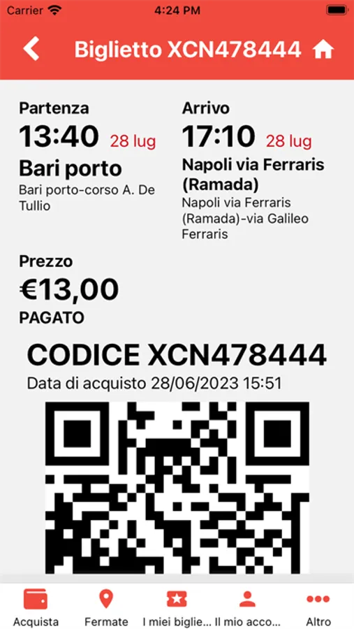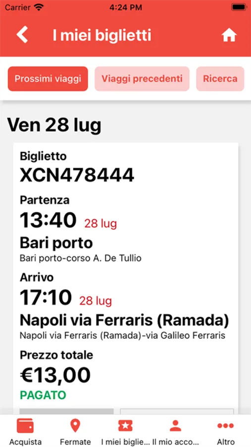 Questa app ti permette di cercare ed acquistare le soluzioni di viaggio, di visualizzare i tuoi biglietti, di visualizzare il QRCode del biglietto per la validazione a bordo, di effettuare le operazioni di annullamento e cambio data sui tuoi biglietti e di ricercare le fermate intorno a te!