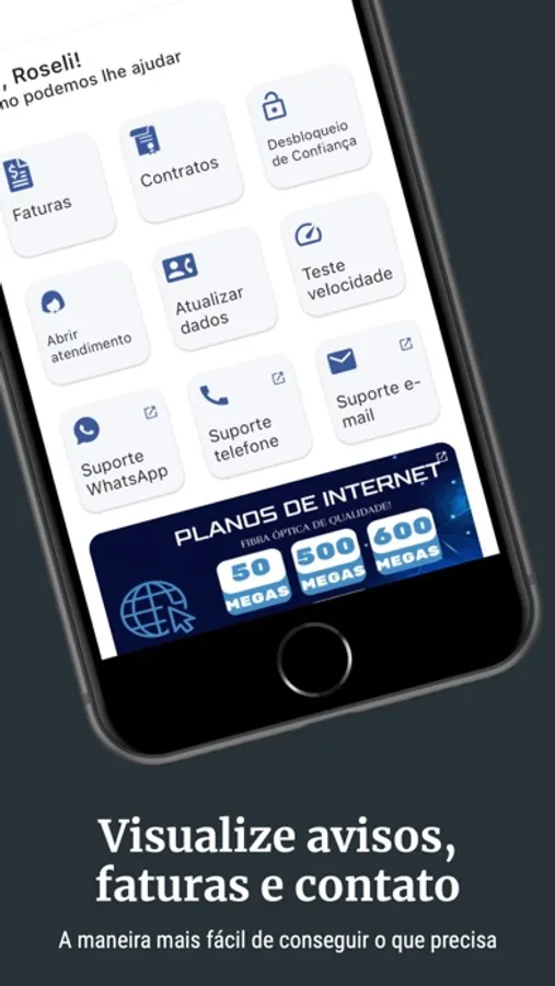 - notificações sobre sua conexão e boletos
