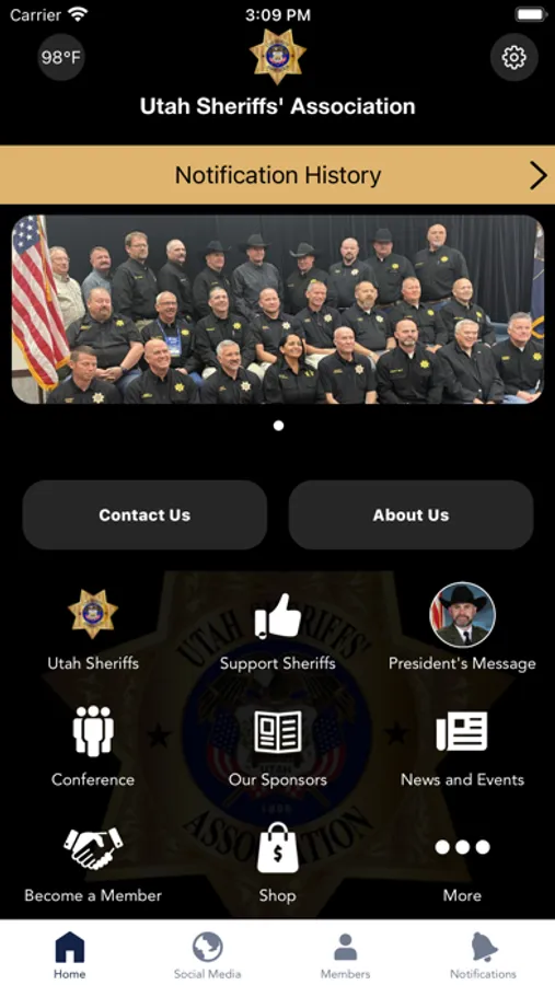 The Utah Sheriffs’ Association (USA) mobile application is an interactive app developed to help improve communication with current USA Members and the citizens of their Sheriff’s Office. The USA App allows USA Members to connect quickly with the USA to become a member, support USA initiatives, make a donation and other interactive features, as well as providing the community the latest sheriff's office news and information.