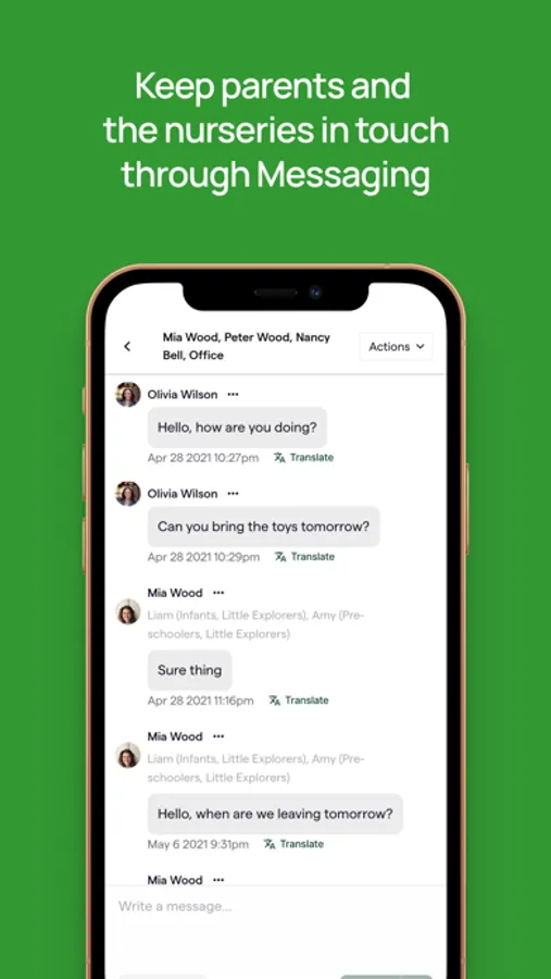 3. Messaging and Communication: The app facilitates direct and secure messaging between parents and the school. This allows parents to easily communicate with the school, ask questions, provide instructions, or discuss any concerns related to their child's care.