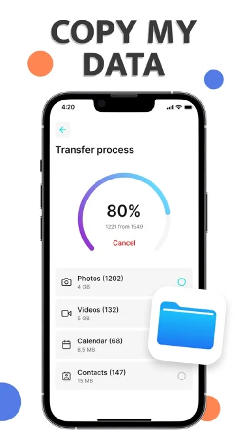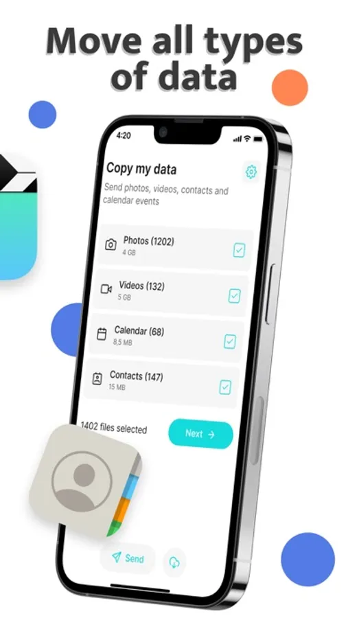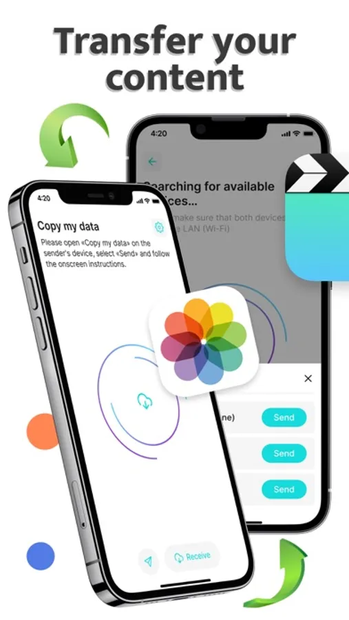 Streamline your device-to-device data transfer with our app. Instantly transfer photos, videos, contacts, and calendar data, along with any other files you need. Our application boasts a user-friendly interface that facilitates swift file retrieval. Seamlessly transfer data to devices on your local network, leveraging the convenience of shared Wi-Fi.