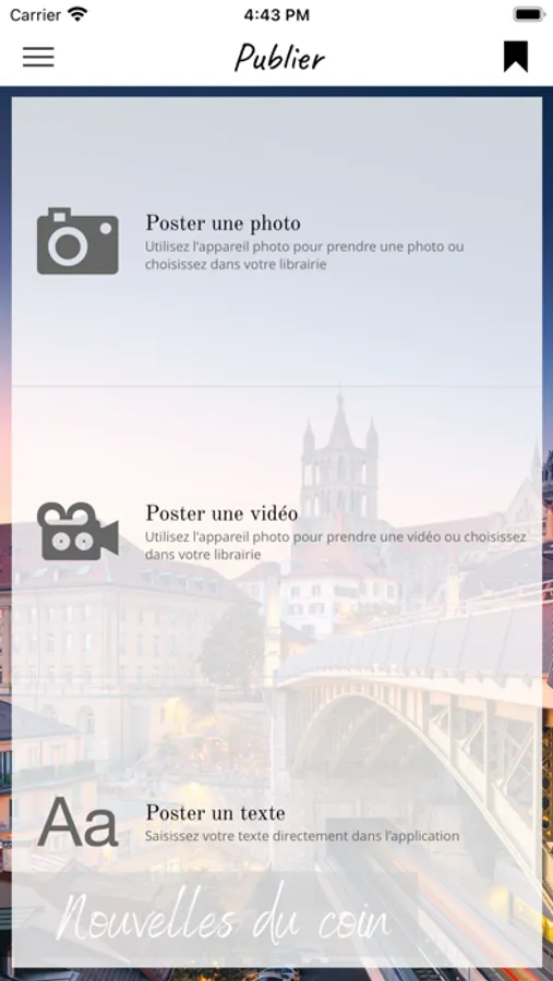 Notre application va plus loin encore en vous permettant de publier vos propres textes, vidéos, et enregistrements audio. Vous avez un talent pour la vidéo, une passion pour le journalisme ou simplement une histoire à raconter ? Cette application est faite pour vous.