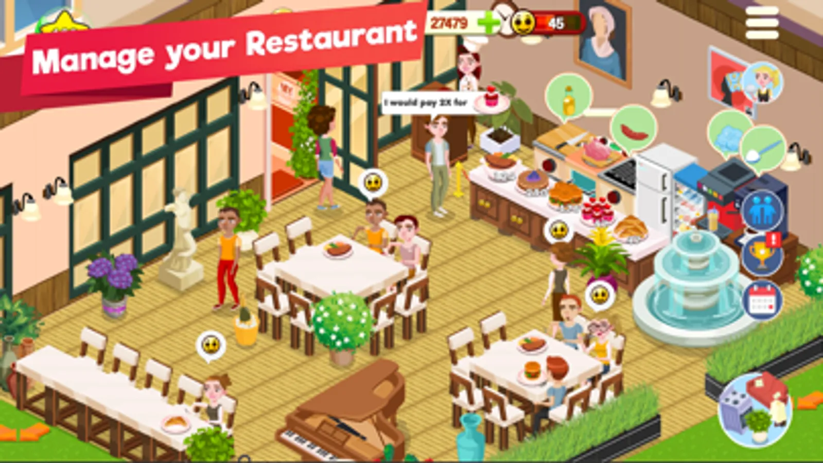 Buy other empty lots in town and grow your own chain of restaurants like a top manager with hundreds of employees and thousands of customers a day! So many features and customizations await!