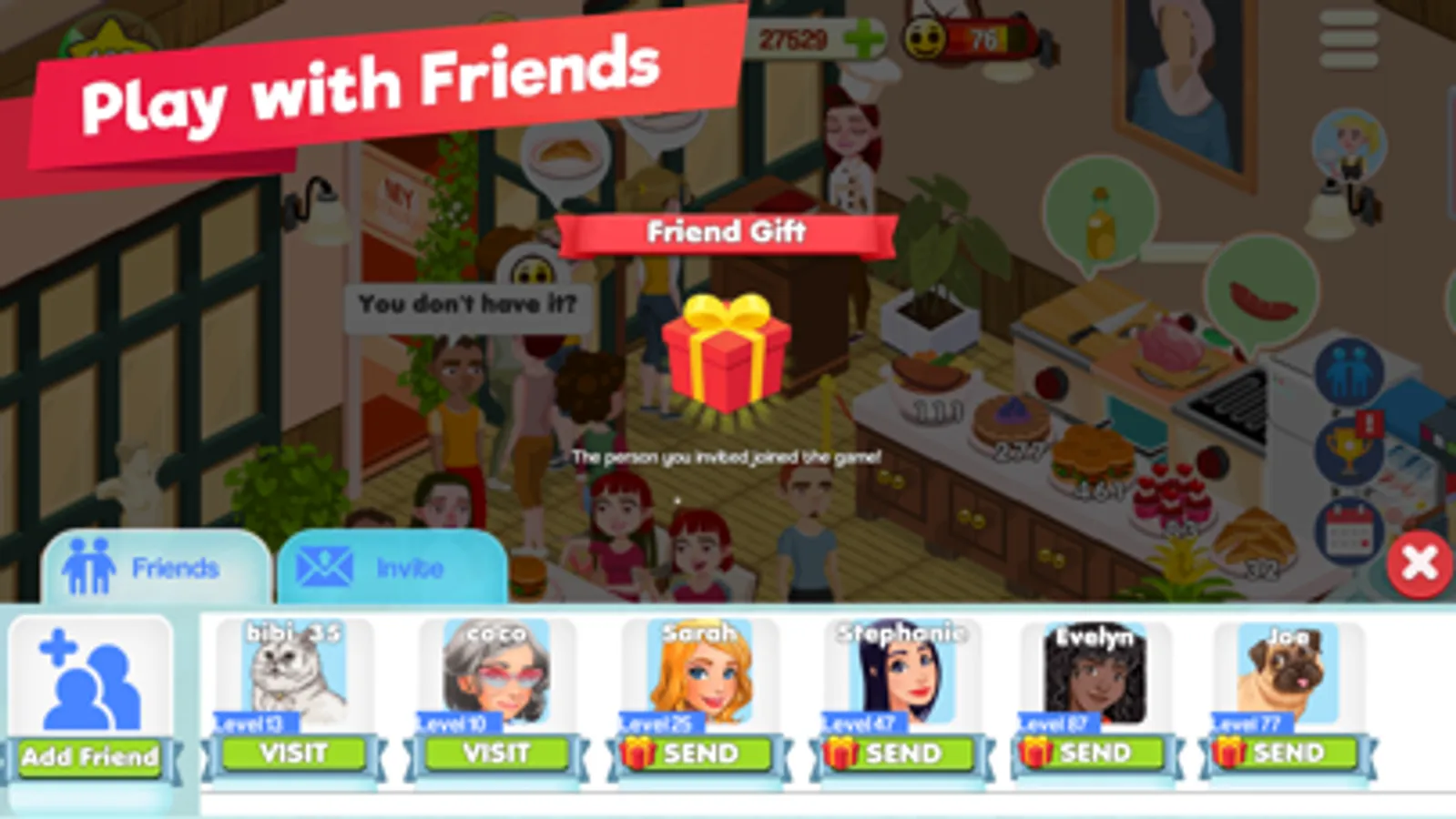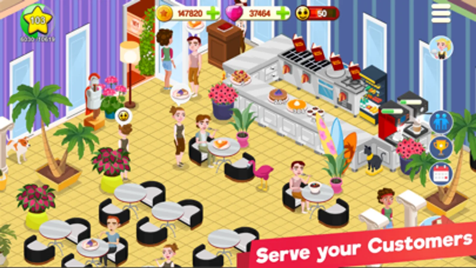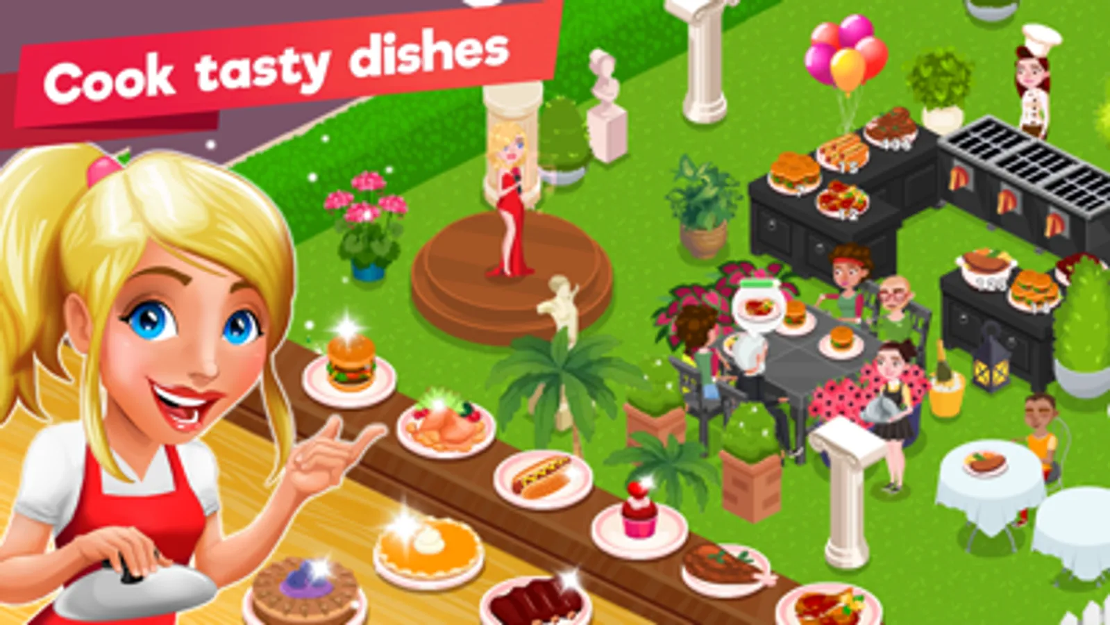 Buy cooking appliances, furniture, tables and chairs, expand your business and restaurant space, decorate and design it, cook delicious food, from burgers to pizza or steak, bake tasty cakes and desserts, serve all these to your customers and grow your brand and business to become a restaurant tycoon.
