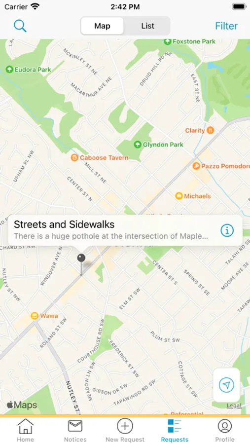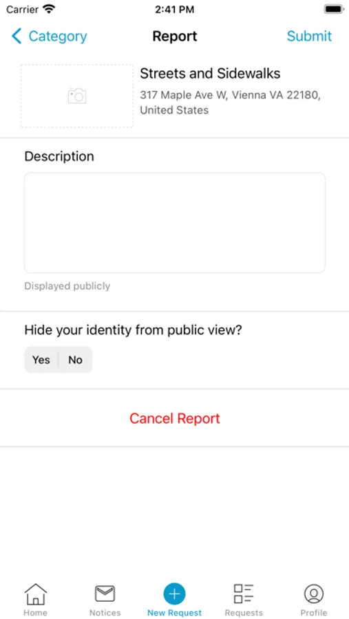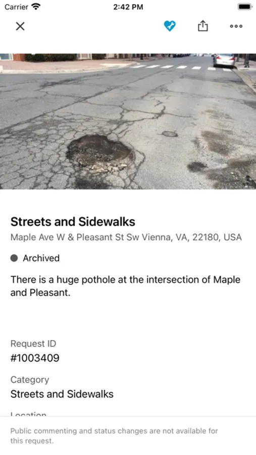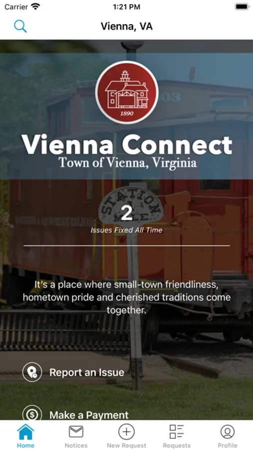 The Town of Vienna uses the Vienna Connect app - a report and tracking tool - to communicate issues to Town service departments. After an issue is submitted, the team will assign issues to the appropriate department or service, track response time, and evaluate repeating repairs as a tracking tool. For the quickest response, submit a ticket through Vienna Connect.