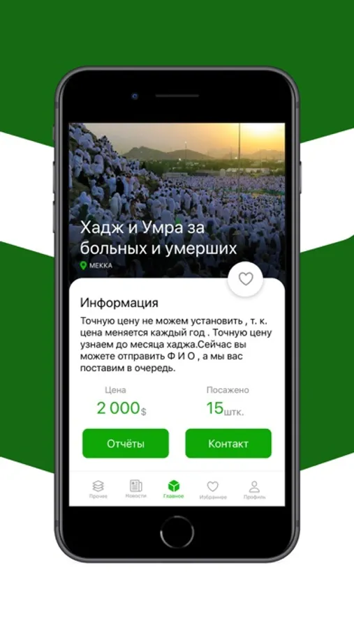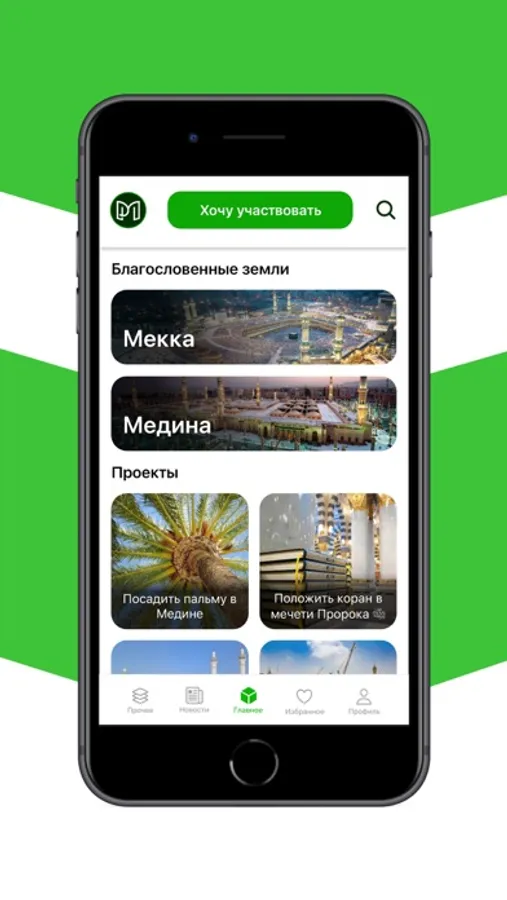 Паломники: Комплексное мобильное приложение для упрощения Хаджа, Умры и богослужения. Услуги включают посадку пальмового дерева (Пальмы), возможность заказать Коран, организацию Хаджа и Умры, а также полную информацию о Мекке и Медине.