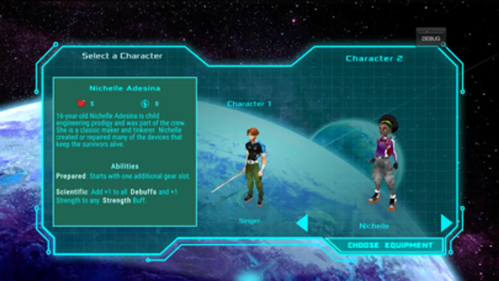 You play two characters in the game, so it is a team journey. Your success depends on your survival skills and your team's ability to work together. Each character's unique abilities will help you overcome obstacles and complete missions. Be careful though. If a character dies, they are permanently out for the remainder of that run.