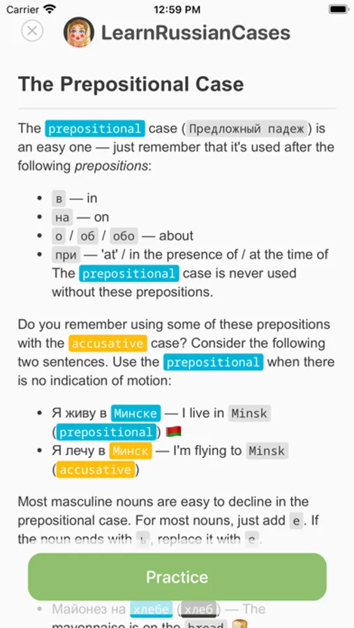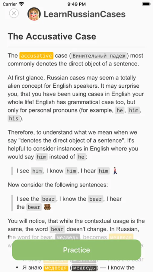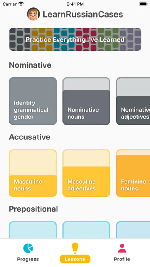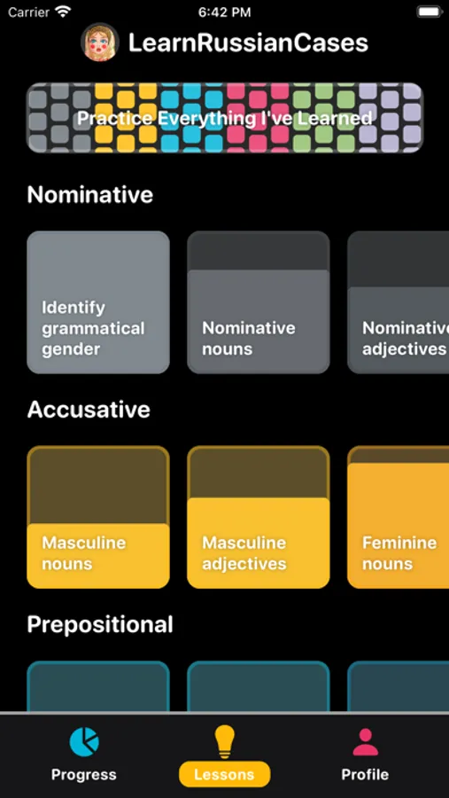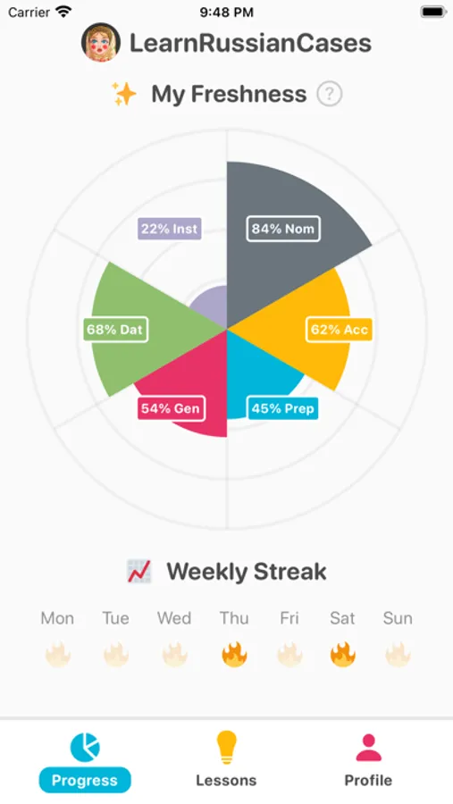 Track your progress through each lesson and check your Freshness chart to see which cases you should practice.