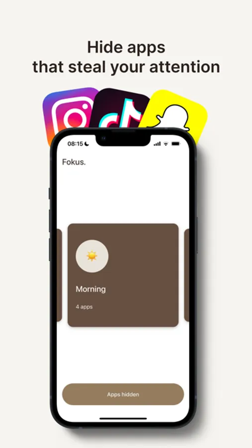 Fokus helps you hide these distracting apps to regain control of your screen time.