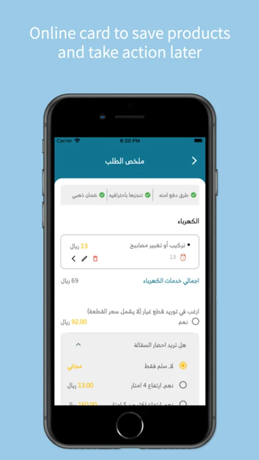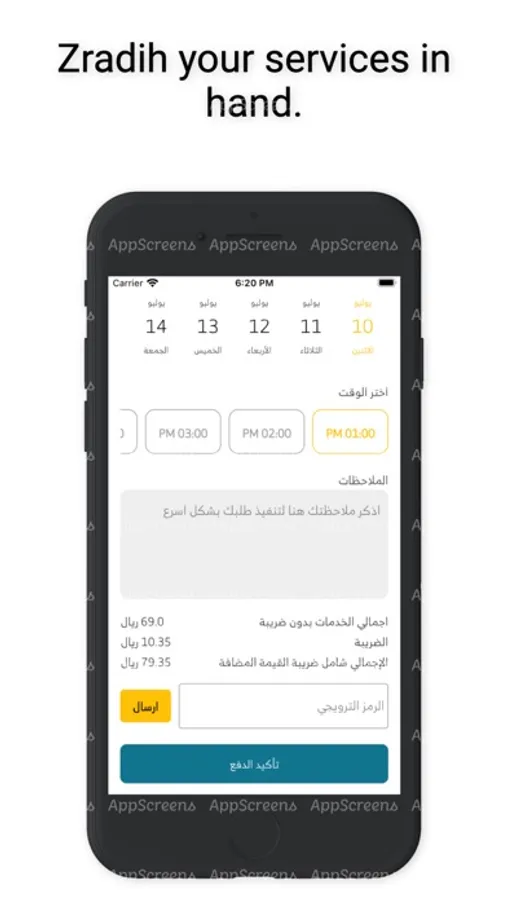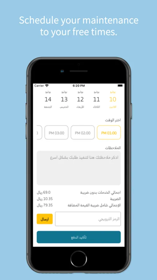 - يسمح للمستخدم بجدولة الصيانة حسب موعد تواجده بالمنزل.