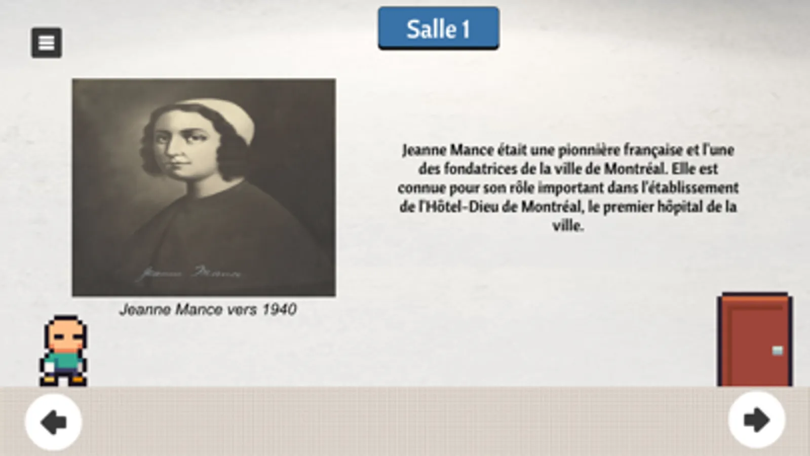 Immerse yourself in the fascinating world of Jeanne Mance, an emblematic figure in history who marked her time. With this innovative application, you will have the unique opportunity to relive the thrilling adventures of this daring explorer and immerse yourself in the heart of her extraordinary journey.