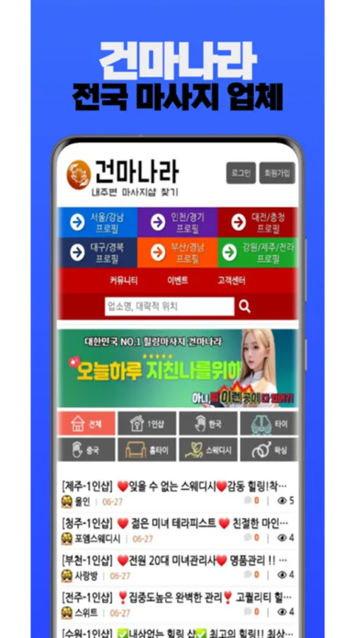 안녕하세요 대한민국 1등 마사지 플랫폼 건마나라 입니다.