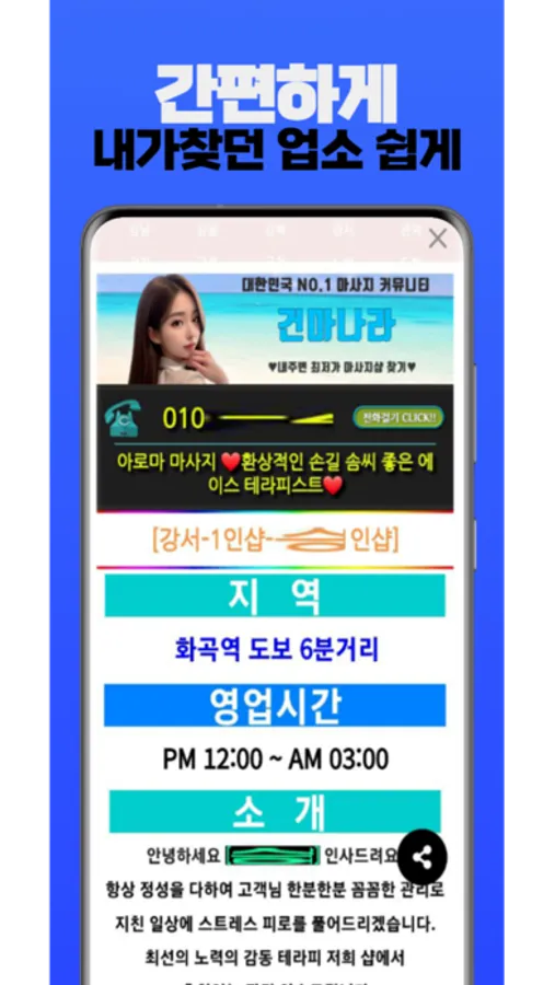 모든 마사지샵 정보를 제공하며, 제휴점의 경우
