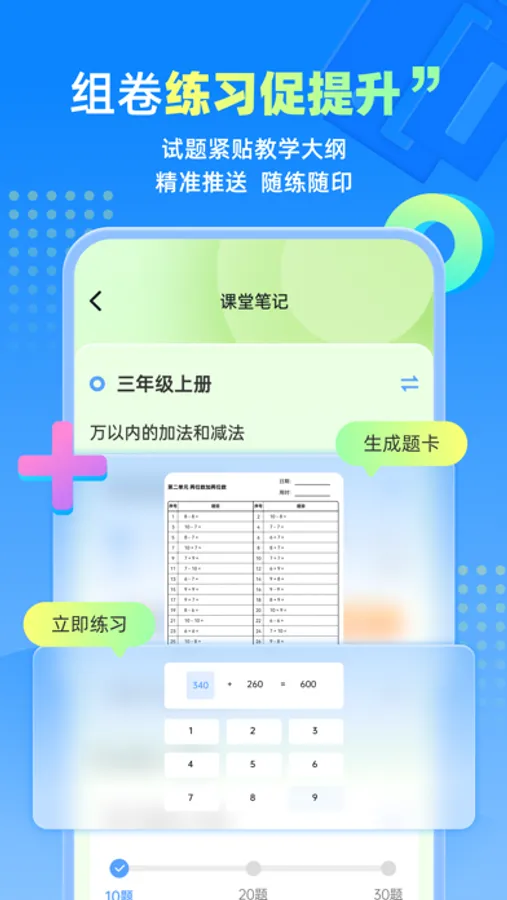 基于人教版《课堂笔记》官方专业内容设计,致力于为孩子们提供优质且多样的教辅资源,贴心满足孩子们在学习过程中的智能工具需求,为每一位孩子的学习之路保驾护航。