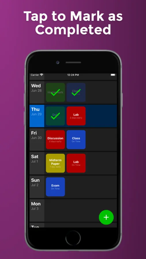 - Mark an assignment as complete by tapping it.