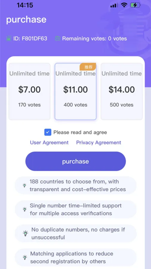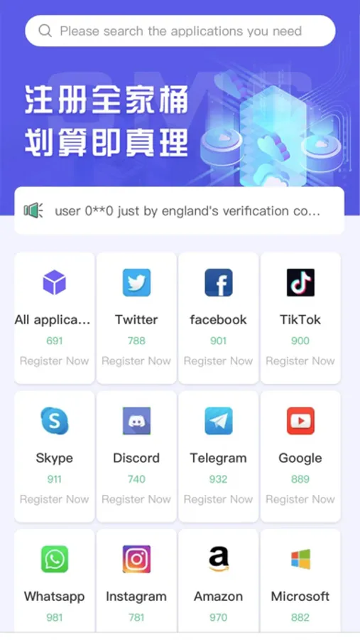 3. After selecting the country and service, you will see the price for each activation and get the verification code
