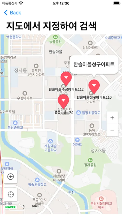2. 지도에서 아파트를 터치하여 검색