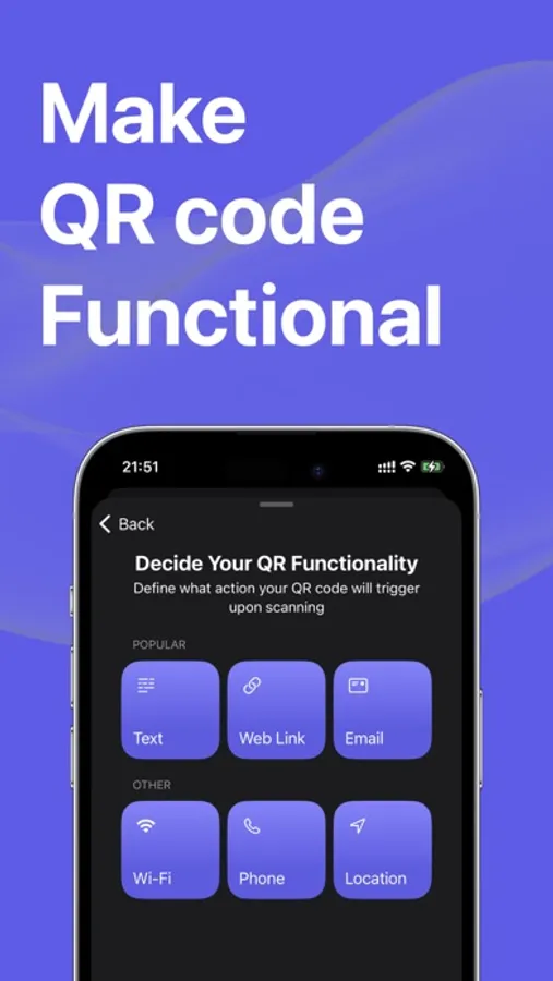 Our app supports a wide variety of QR code functionalities, from simple URLs to complex Wi-Fi parameters and geographical locations. All your QR code needs in one place!
