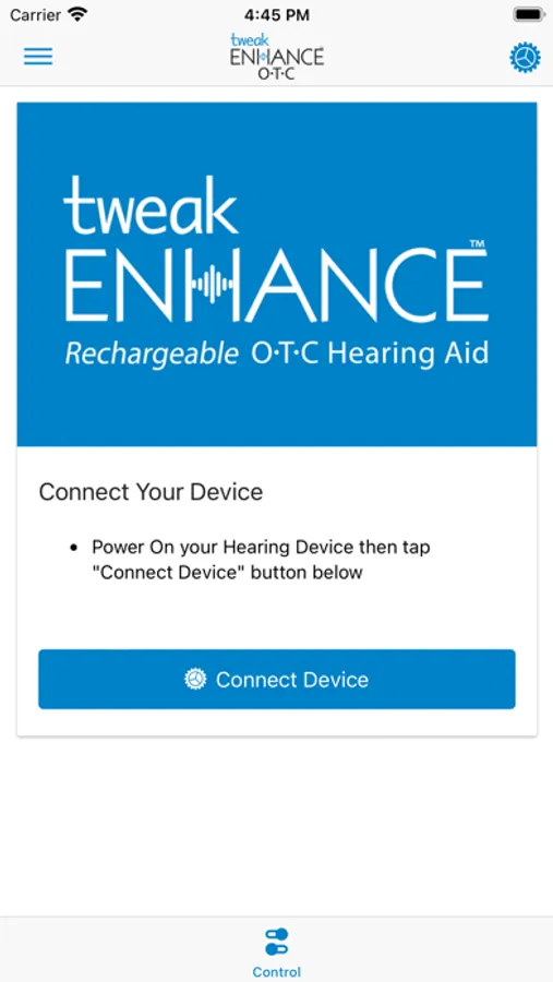 A control app for Tweak Enhance OTC hearing aid. User can use this app to control the volume and switch program of their devices.