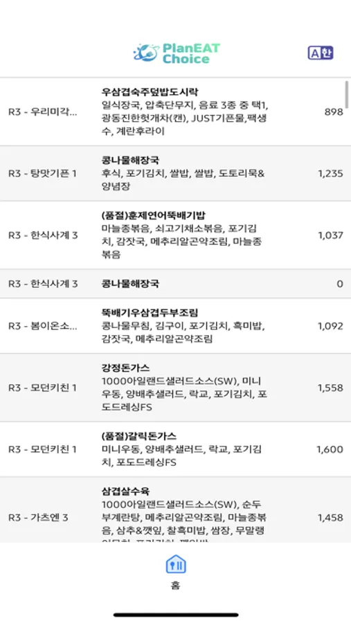 삼성전자 단체급식 관리 시스템(PlanEAT Choice)이 구축된 사업장의 식당별 급식업체가 제공하는 메뉴를 통합하여 각 식당의 일자별 메뉴와 영양소 정보 조회하는 서비스를 제공합니다