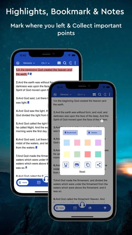 # Highlights, Bookmarks & Notes: Mark and catch up where your favorite verses